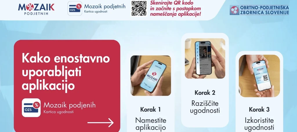 hiter pregled vseh ugodnosti in akcij obvestila o ponudbah v bližini enostaven dostop do posebnih popustov ažurne informacije o novostih in ekskluzivnih ponudbah Z digitalno rešitvijo bodo ugodnosti OZS vedno pri roki! Več o ugodnostih Mozaik podjetnih za člane OZS >>> https://www.youtube.com/watch?v=N0l7IH-pcUQ